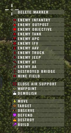- 兵士がパイロットと直接またはCASマーカー(中央を向いた4つの矢印)を置く事で連絡を取ります