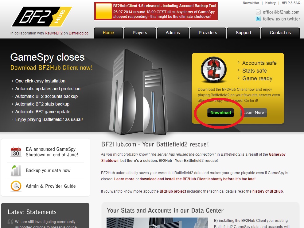 BF2Hubという有志によるサポートがあり、そちらのオンラインサービスに変更してログインする手段は以下の通り。