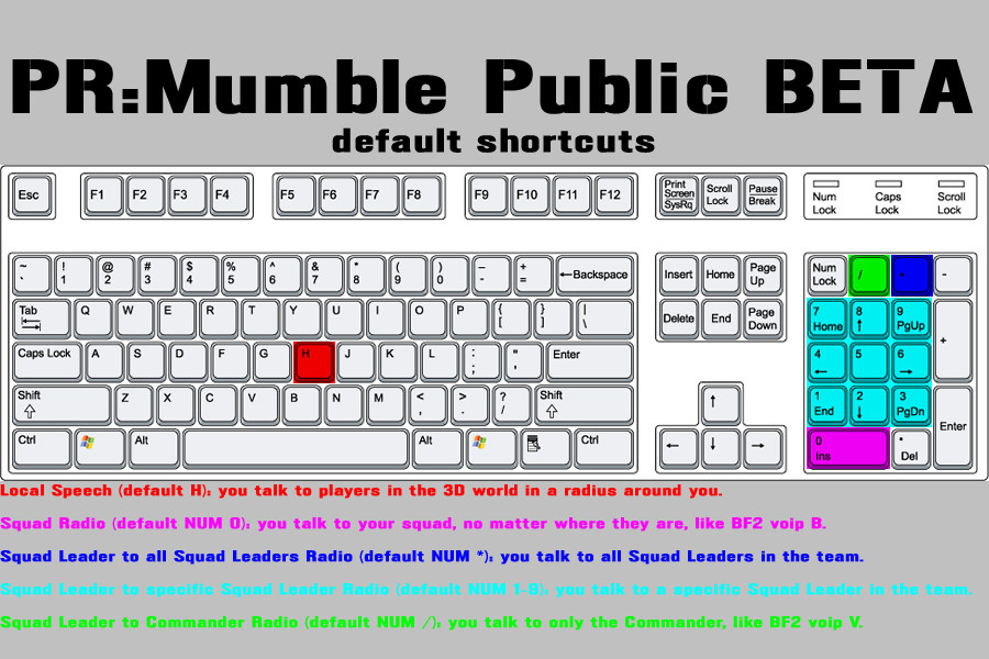 ゲーム内では以下のキーが、それぞれのMumble向けに割り当てられています。